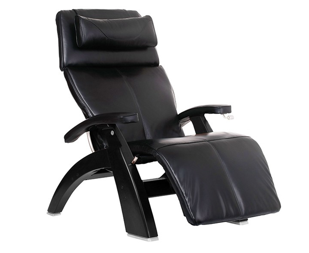 Black Premium Leather Matte Black Wood Base Series 2 Perfect Chair Zero Gravity Power Recliner by Human Touch - Includes a Human Touch 7 Year In-Home Parts and Labor Warranty for New Perfect Chairs. The zero gravity position cradles your back and elevates your legs above your heart, which is the position that doctors recommend as the healthiest way to sit. Easy ingress and egress are achieved with the extended range of motion in the upright position. Exclusive Features Patented Orthonomic™ body frame with built-in lumbar curve. Extra wide legrest provides maximum comfort. The hand carved and finished base is pleasing to the eye, and constructed for years of use. The brake control system is easy to use and extremely reliable. Wedge-shaped, adjustable headrest cushion provides comfort for your head and neck. The adjustable headrest feature allows you to customize the optimum angle of comfort to maximize neck support while reading or watching television (Available on NEW and select Refurbished Chairs). Exclusive guide rail system for smooth recline motion and position control. Refurbished Chairs include a manufacturer's 90 Day Parts Limited Warranty*. New Perfect chairs include a manufacturer's 3 year limited warranty*. For a Power Electric Recline Version please see the PC-600 or PC-610 Omni-Motion Perfect Chair