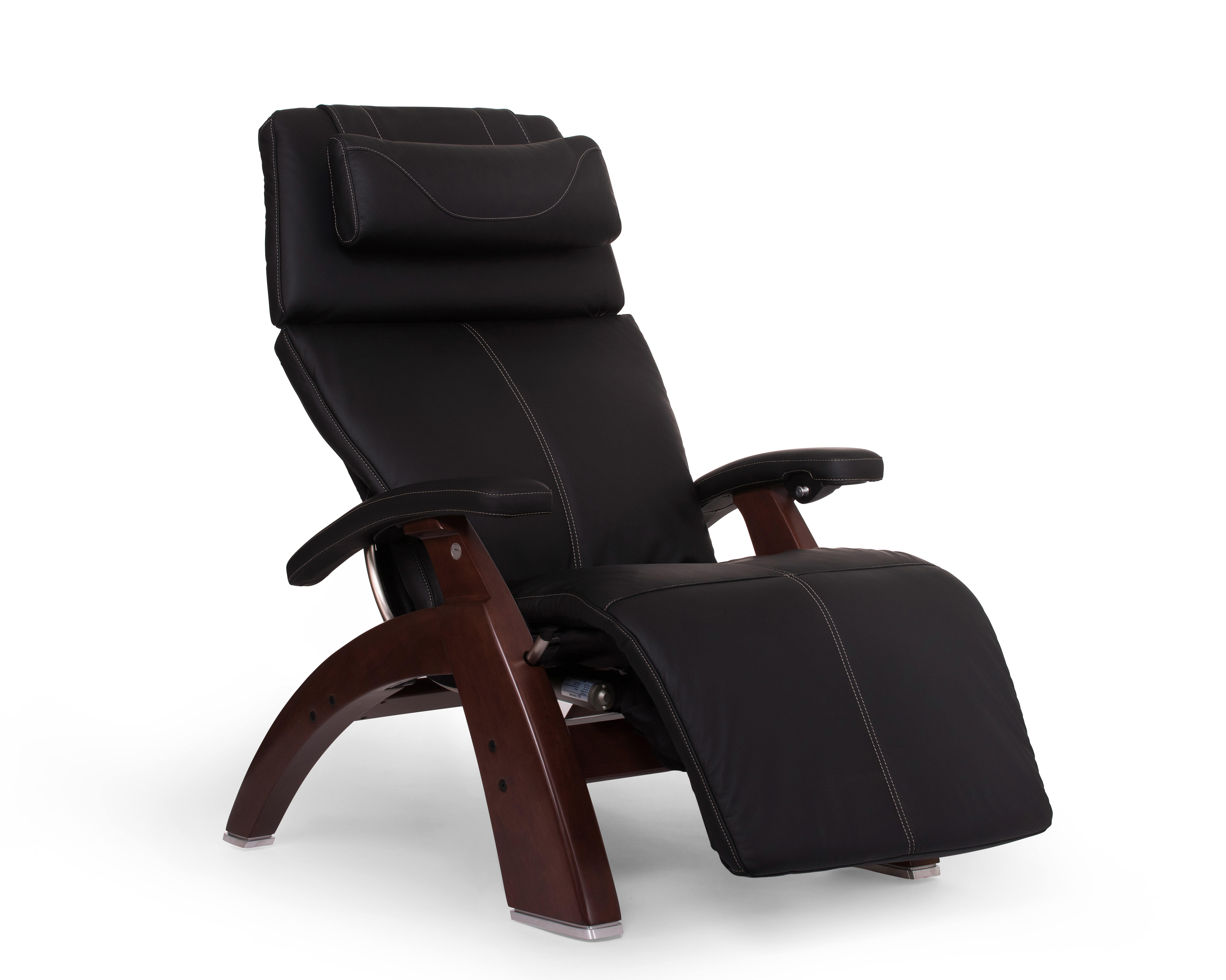 Black Leather with Chestnut Wood Base Series 2 Classic Human Touch PC-420 PC-600 PC-610 Perfect Chair Recliner by Human Touch