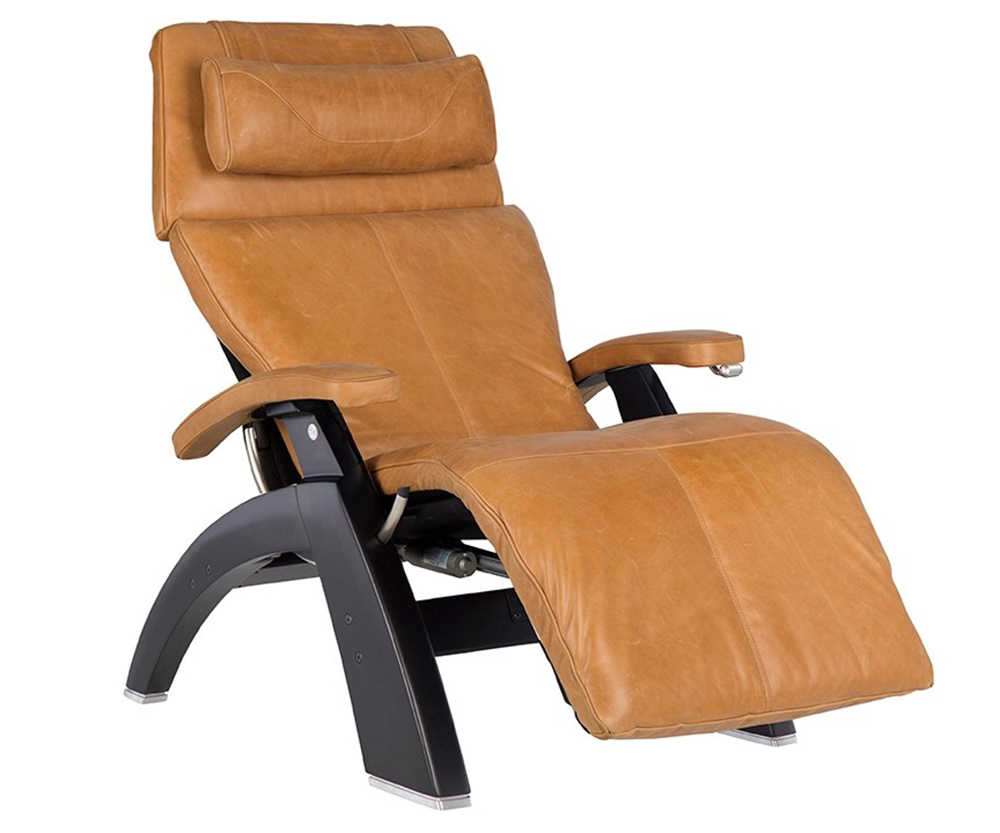 PC-LiVE Sycamore Premium Leather Matte Black Wood Base PC-420 Manual Recline Series 2 Perfect Chair Zero Gravity Recliner by Human Touch - Includes a Human Touch 7 Year In-Home Parts and Labor Warranty for New Perfect Chairs. The zero gravity position cradles your back and elevates your legs above your heart, which is the position that doctors recommend as the healthiest way to sit. Easy ingress and egress are achieved with the extended range of motion in the upright position. Exclusive Features Patented Orthonomic™ body frame with built-in lumbar curve. Extra wide legrest provides maximum comfort. The hand carved and finished base is pleasing to the eye, and constructed for years of use. The brake control system is easy to use and extremely reliable. Wedge-shaped, adjustable headrest cushion provides comfort for your head and neck. The adjustable headrest feature allows you to customize the optimum angle of comfort to maximize neck support while reading or watching television (Available on NEW and select Refurbished Chairs). Exclusive guide rail system for smooth recline motion and position control. Refurbished Chairs include a manufacturer's 90 Day Parts Limited Warranty*. New Perfect chairs include a manufacturer's 3 year limited warranty*. For a Power Electric Recline Version please see the PC-600 or PC-610 Omni-Motion Perfect Chair