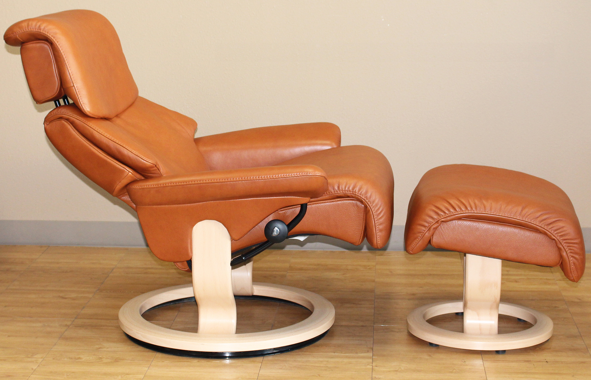 About Stressless Leather - Ekornes purchases its upholstery leather from the leading worldwide tanneries. The hide selection process is overseen by Offical Ekornes Stressless inspectors using the most stringent international quality control standards in the industry. All Stressless Leather is aniline-dyed. Color nuances are normal and should be expected. Please note that Leather absorbs moisture and breathes. With this some color changes will occur with time and will be accelerated with exposure to sunlight.