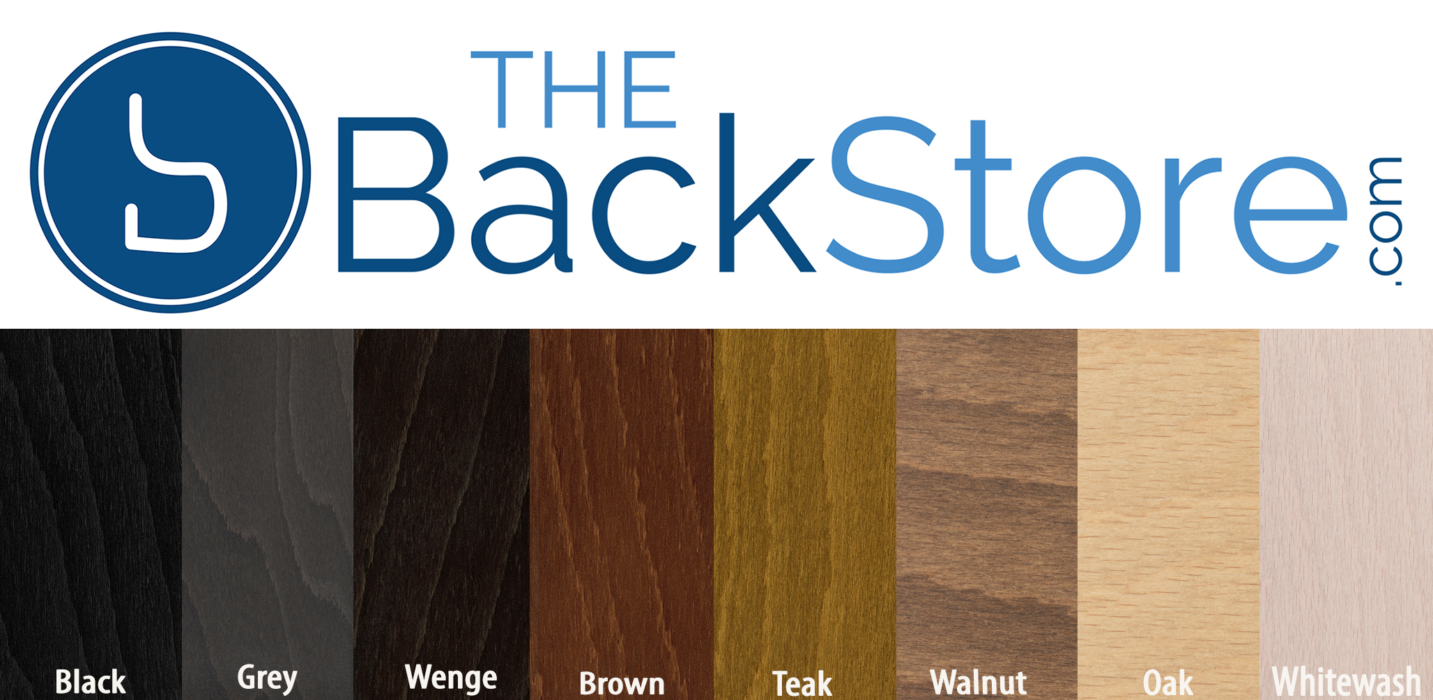 Whitewash Oak, Natural, Oak, Light Walnut, Cherry, Teak, Brown Walnut, Mahogany, Grey, Wenge and Black.