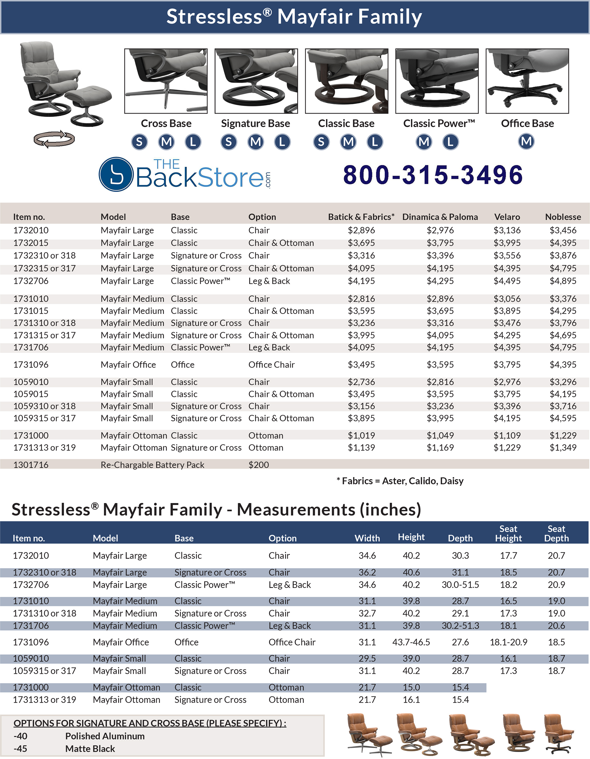 Stressless Mayfair Recliner Chair and Ottoman Size Dimensions