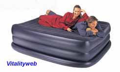 Raised Supreme Nylon AirBed Air Mattress - The convenience of a portable airbed with the comfort of sleeping on a raised platform. Plush, waterproof nylon flocking covers the mattress top. An indentation on the side helps grip fitted sheets. Dual chamber construction. The lower chamber functions as the box spring platform on a traditional bed, providing extra firmness and support. The upper chamber functions as a mattress and can be adjusted for level of firmness. The Queen sized mattress (approximately 60x80") is raised approximately 22" from the floor for convenience. The Mid-Rise (Queen is approximately 64"x82", Twin is approximately 40x80") is raised approximately 19.5" from the floor. Cozy nylon flocked fabric mattress top. Deflates completely for travel and storage. Includes duffel bag with shoulder strap. Weight capacity is approximately 600 lbs for the Queen Size. New Wireless Remotes, Backrests and Memory Foam Padded Airbeds now available. Electric Air Pump included on select models below. All sizes are approximate as inflation pressure and use will affect the overall size of these airbeds.