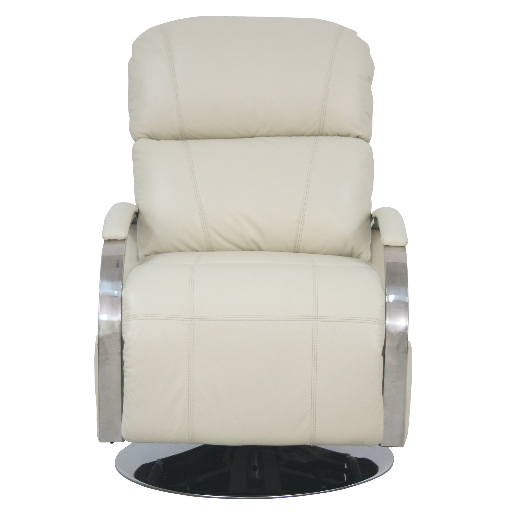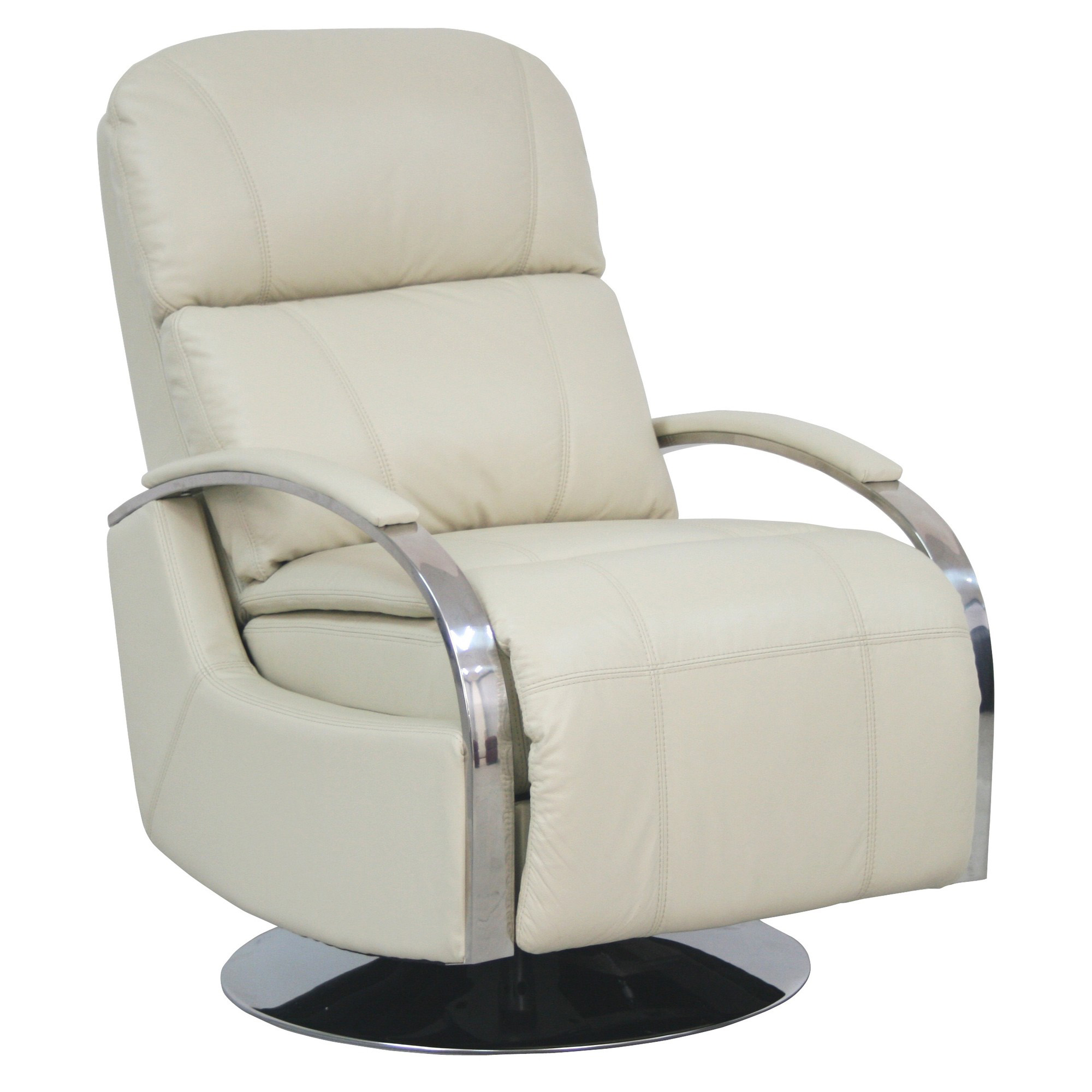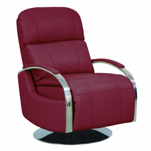 Barcalounger Regal II Leather Swivel Recliner Lounger Chair - Polished chrome arms and swivel base create the foundation for the Regal ii, a sleek swivel recliner featuring a chaise pad for additional comfort. Top quality Leggett and Platt reclining mechanism is easily activated by leaning into chair back; unit requires only 2.5 lbs of pressure to open. Mechanism has plastic delrin bushings for silent, squeak-free operation and is secured to the recliner with metal bolts and t-nuts, for increased stability and durability. Mechanisms bolted to framewith I bolts, 1.8 Resilency Foam, padding on backs and sides of all chairs. Hardwood and Plywood Frames with Mortise and tenion glued joints. 30 Superior individual pocketed coils in each seat cushion , fully enclosed in fabric, the foam is topped with blended down feathers. High resilence seat foam for superior durability and comfort. Medium seat density. Extremely durable frames. Colors: |