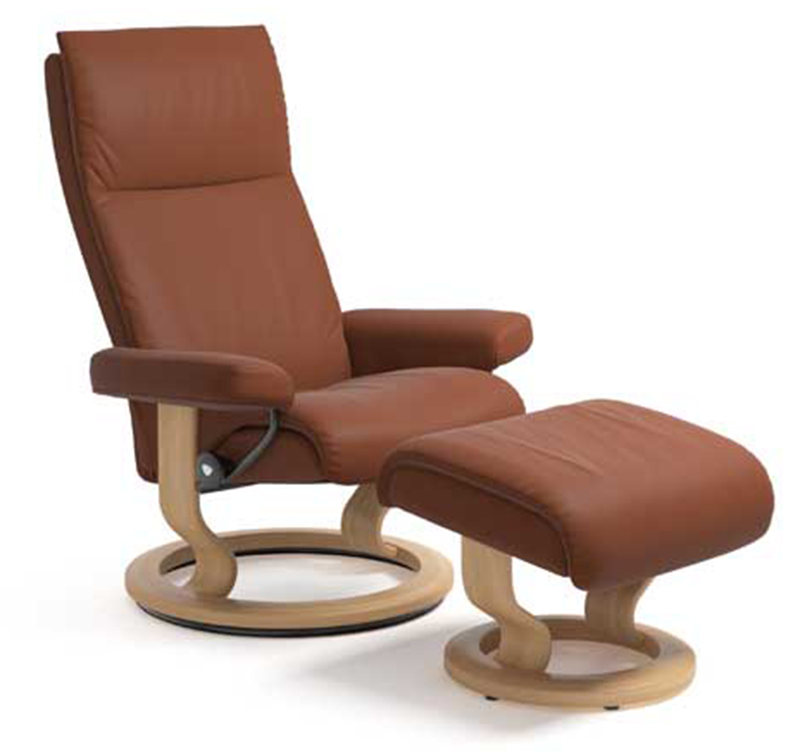 Stressless Aura Recliner Chair + Ottoman - Classic Base
