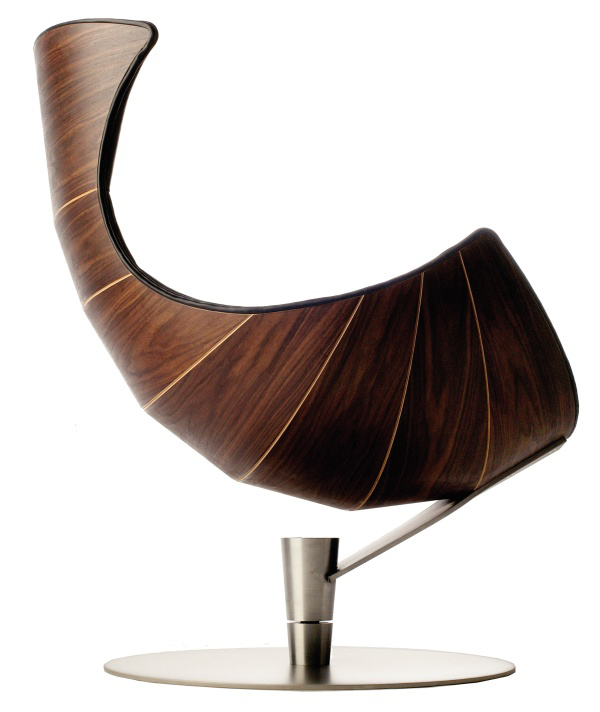 chair has a laminated frame (shell) in beech wood, with exterior veneer of walnut
