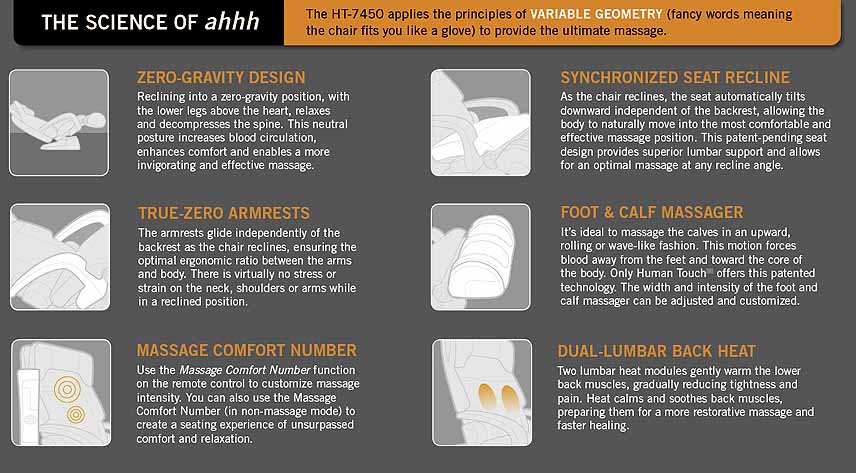 Human Touch Massage Chair Comparison Chart. NEW chairs include continental USA Ground Curbside Shipping and Sales Tax.