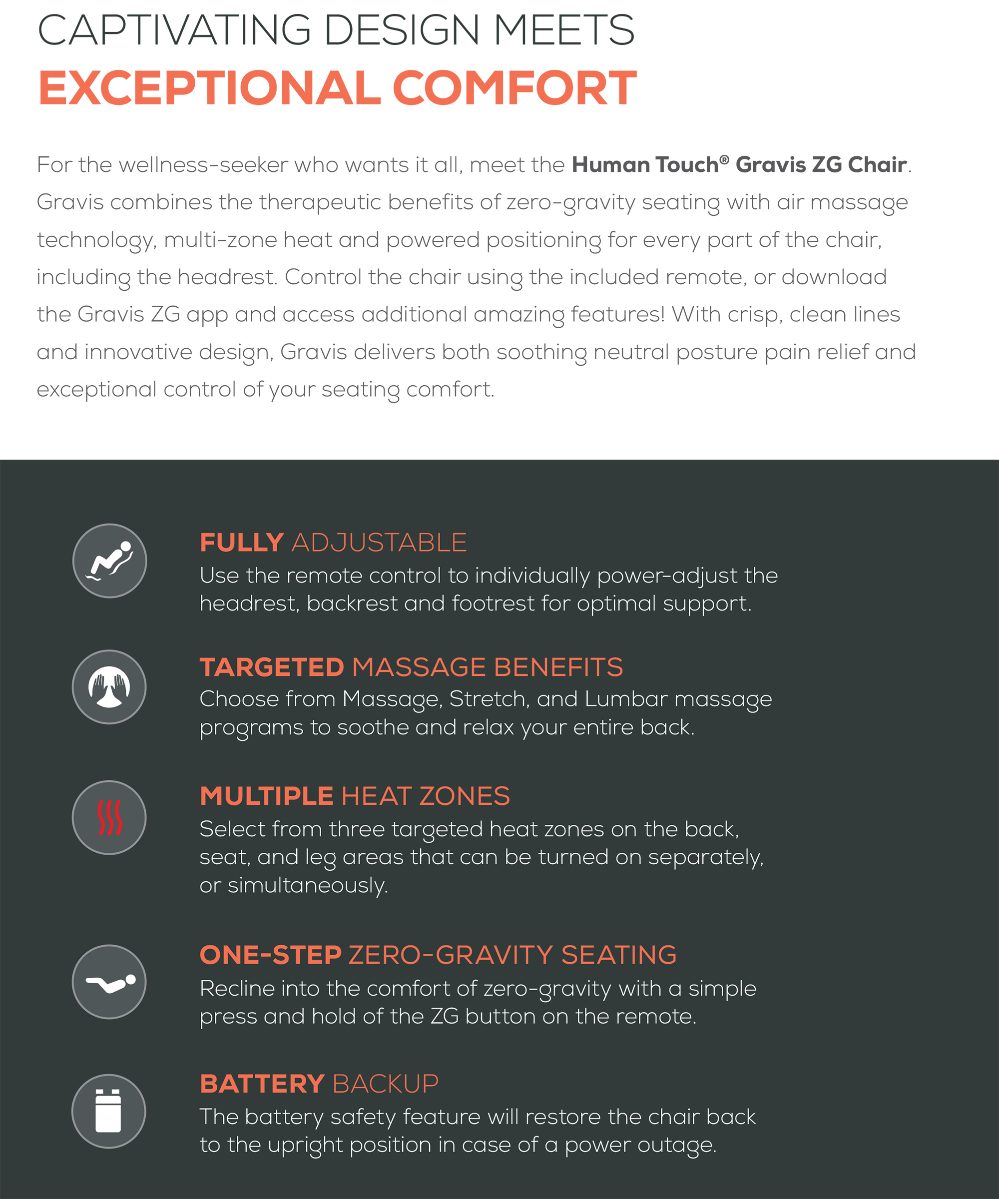 who wants it all, meet the Human Touch® Gravis ZG Chair. Gravis