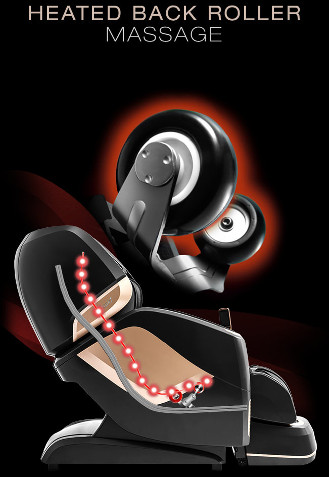 - The Osaki OS-Pro Maestro has the most advanced back heating system. The roller itself will heat up acting like hot stones massaging at the same time. The allows for a far greater surface heating area. Experience the luxury of hot stones warming the muscles from your neck to your hamstrings.