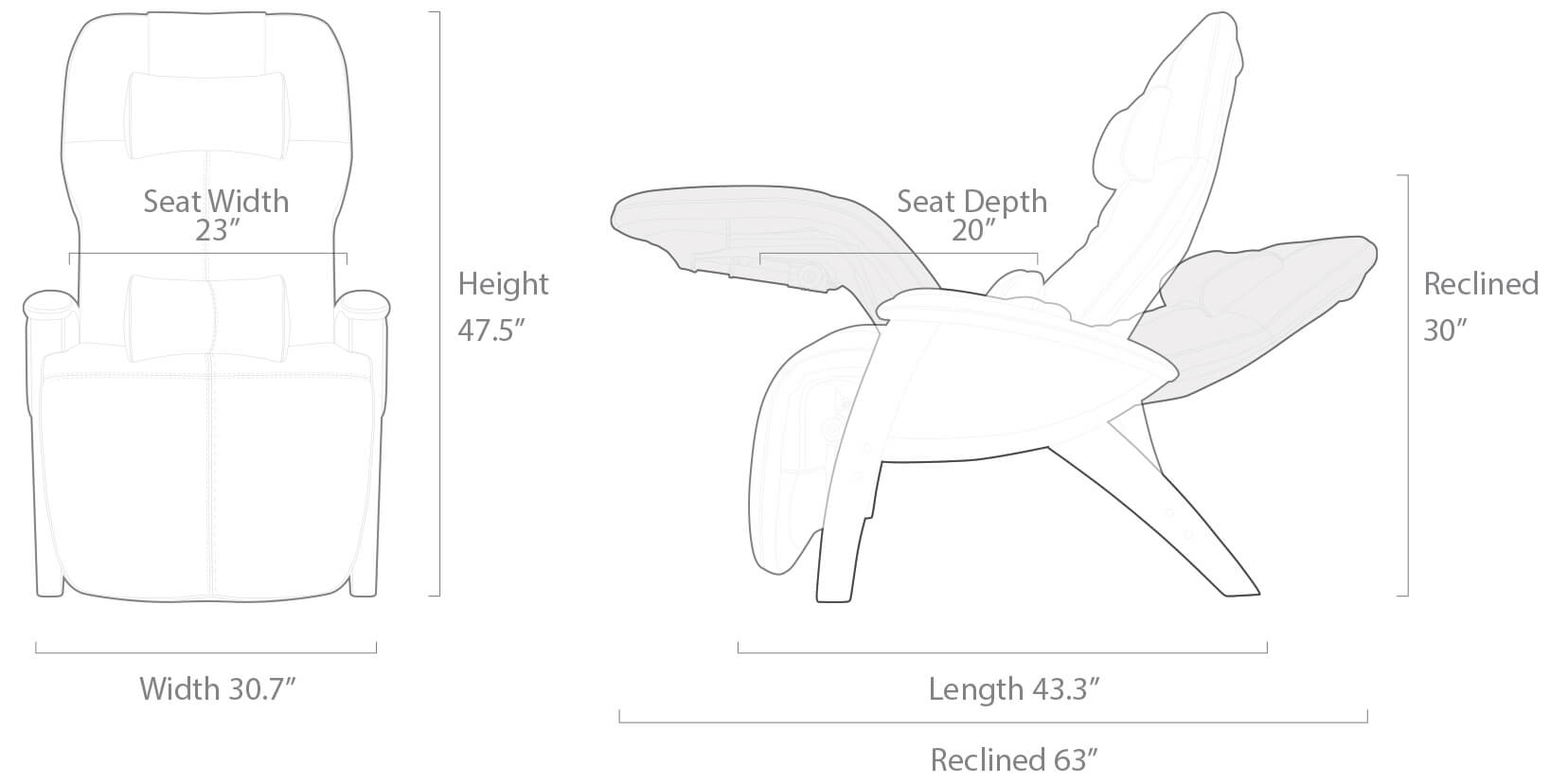- Approximate Dimensions: Reclined Dimension (L x W x H): 63"