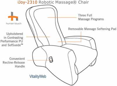 The amazing iJoy2310 Robotic Massage® chair looks just as amazing as it makes you feel. Choose from designer colors and options with classic lines and contrasting upholstery materials designed to fit any decor. Contemporary, classic or traditional – whatever your style is, the Human Touch iJoy-2310 fits right in. Kick back in the iJoy-2310 massage chair, pull the recline handle and enjoy any of three intelligently designed invigorating auto-massage programs which incorporate four expert massage techniques to melt away stress, muscle soreness and tension. Pull the recline-release handle to ease the iJoy-2310 all the way to a 170-degree angle. The further you go back, the greater the massage intensity. Recline slowly, discover the perfect spot and enjoy! You’ll know what we mean when we say “Love at first seat”. |